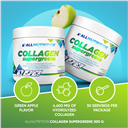 ALLNUTRITION COLLAGEN SUPERGREENS is a unique combination of hydrolysed collagen, hyaluronic acid, spirulina and chlorella, plant extracts and vitamins – everything you need to prepare a delicious shake in just a few moments, with a unique and refreshing green apple flavour. It’s your daily dose of care for body and mind, enclosed in a special blend that supports regeneration, health, and vitality.
