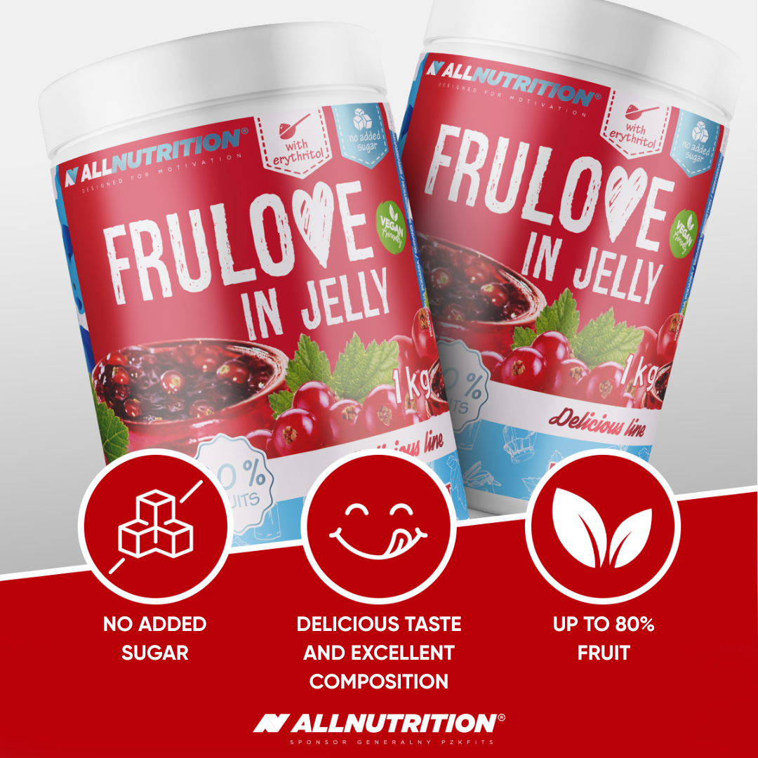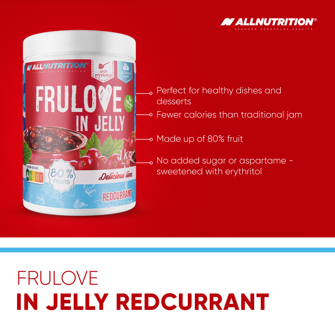 ALLNUTRITION FRULOVE IN JELLY REDCURRANT is a delicious sugar-free jam with whole currants, with a fruit content of up to 80%! It was created for all those who want to take care of their figure without giving up a little sweet pleasure in their diet.