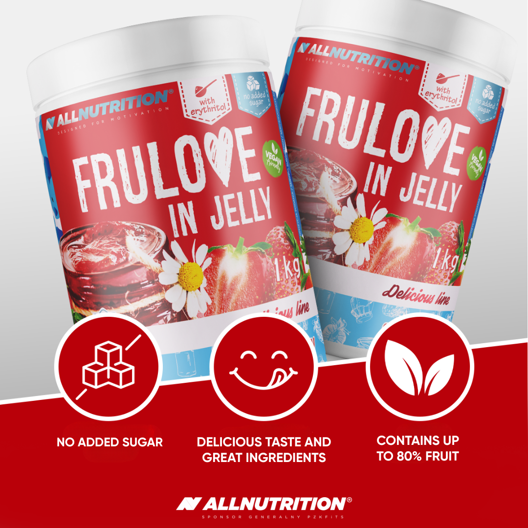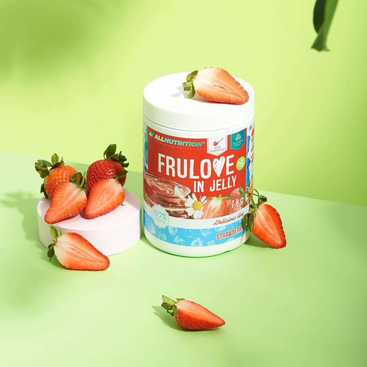 ALLNUTRITION FRULOVE IN JELLY STRAWBERRY is a delicious sugar-free strawberry fruit jam with whole strawberry pieces. It is designed for all those who want to take care of their figure without giving up a little sweet pleasure in their diet.