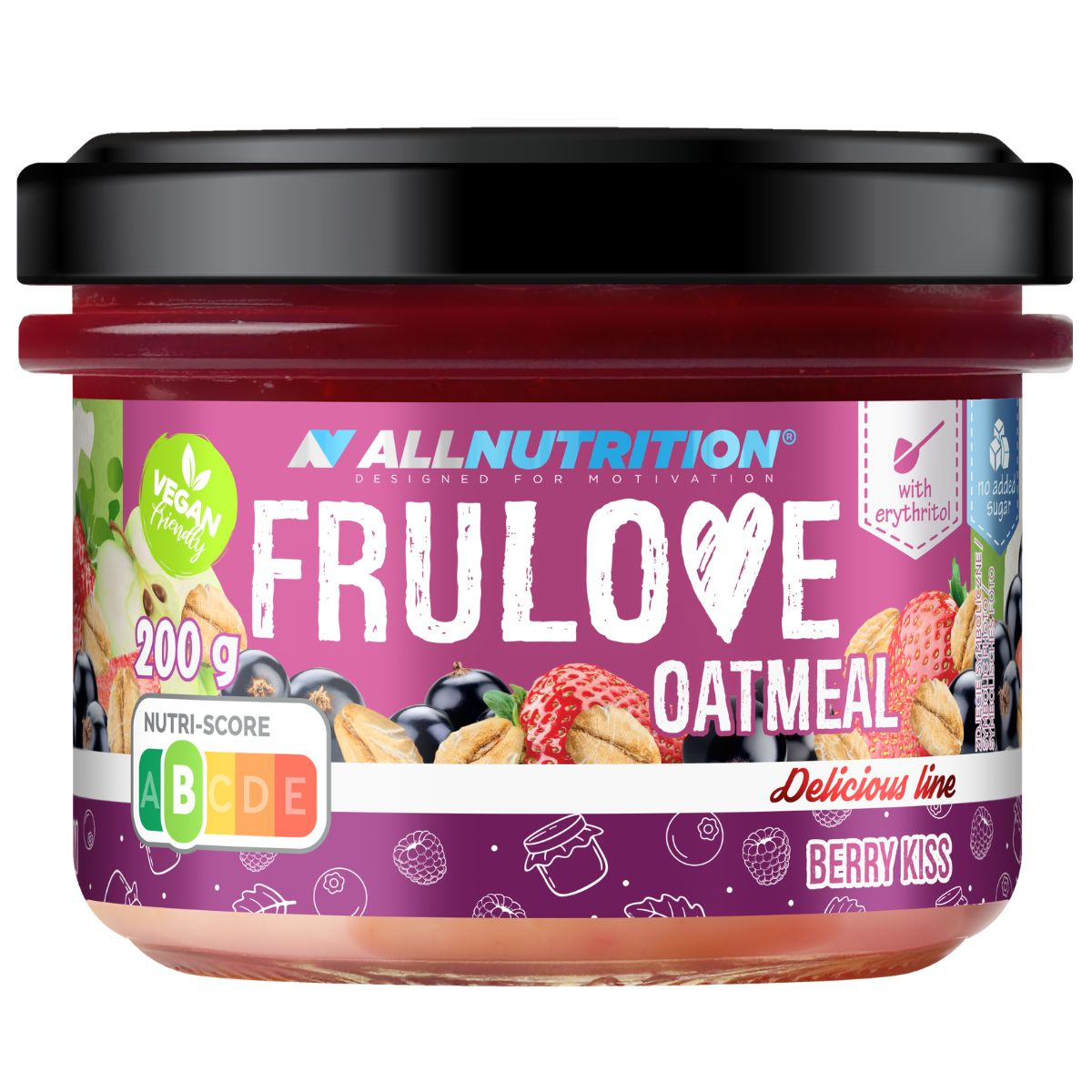 water, czarna porzeczka (9,5 %), płatki owsiane (7 %), truskawka (6,3 %), koncentrat soku jabłkowego (4,3 %), sweeteners: erythritol, rapeseed oil, rice starch, flavouring, black carrot juice concentrate, acidity regulator: citric acid, sweeteners: sucralose