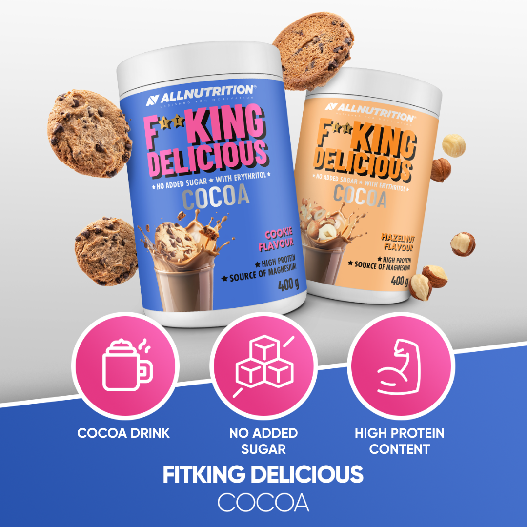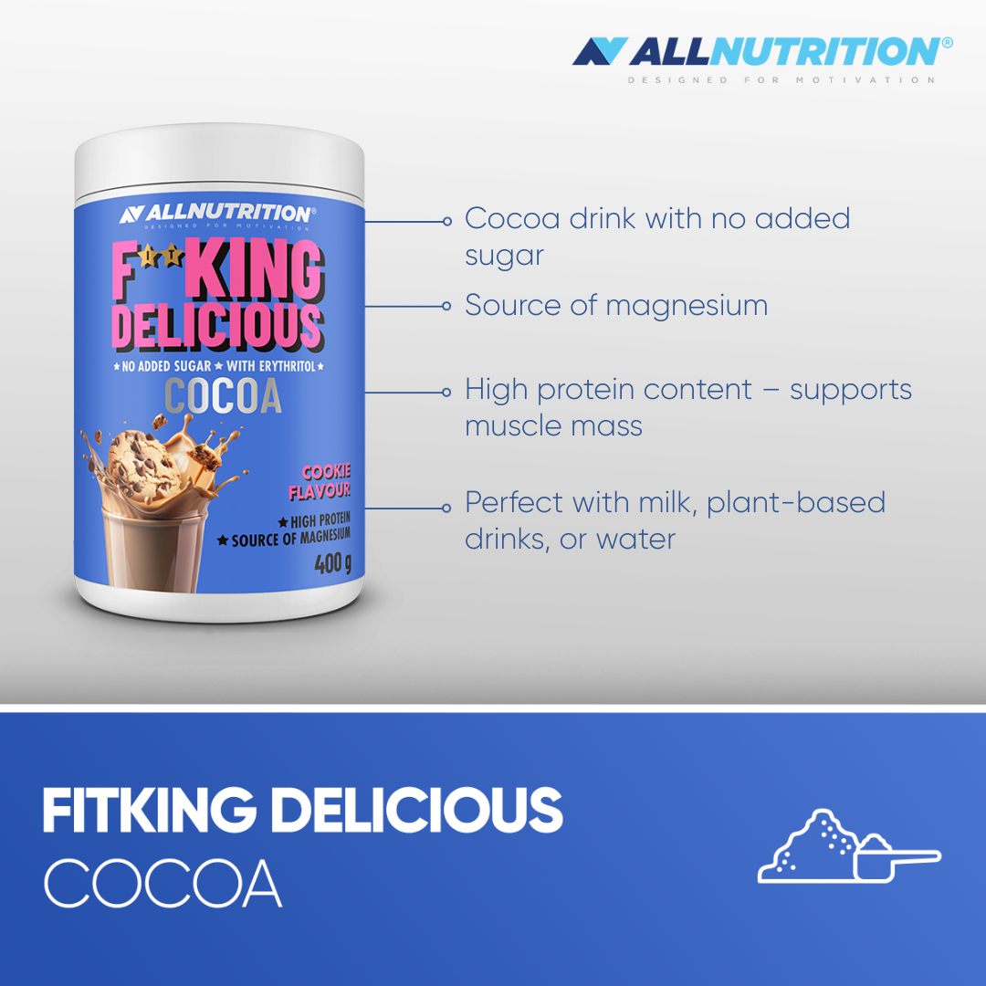ALLNUTRITION FITKING DELICIOUS COCOA is a modern alternative to traditional cocoa – with no added sugar, but with high protein content and added magnesium. This functional drink with an intense cocoa flavour is a perfect choice for people who care about their figure, reduce sugar in their diet, or are looking for a light, nutritious dessert.