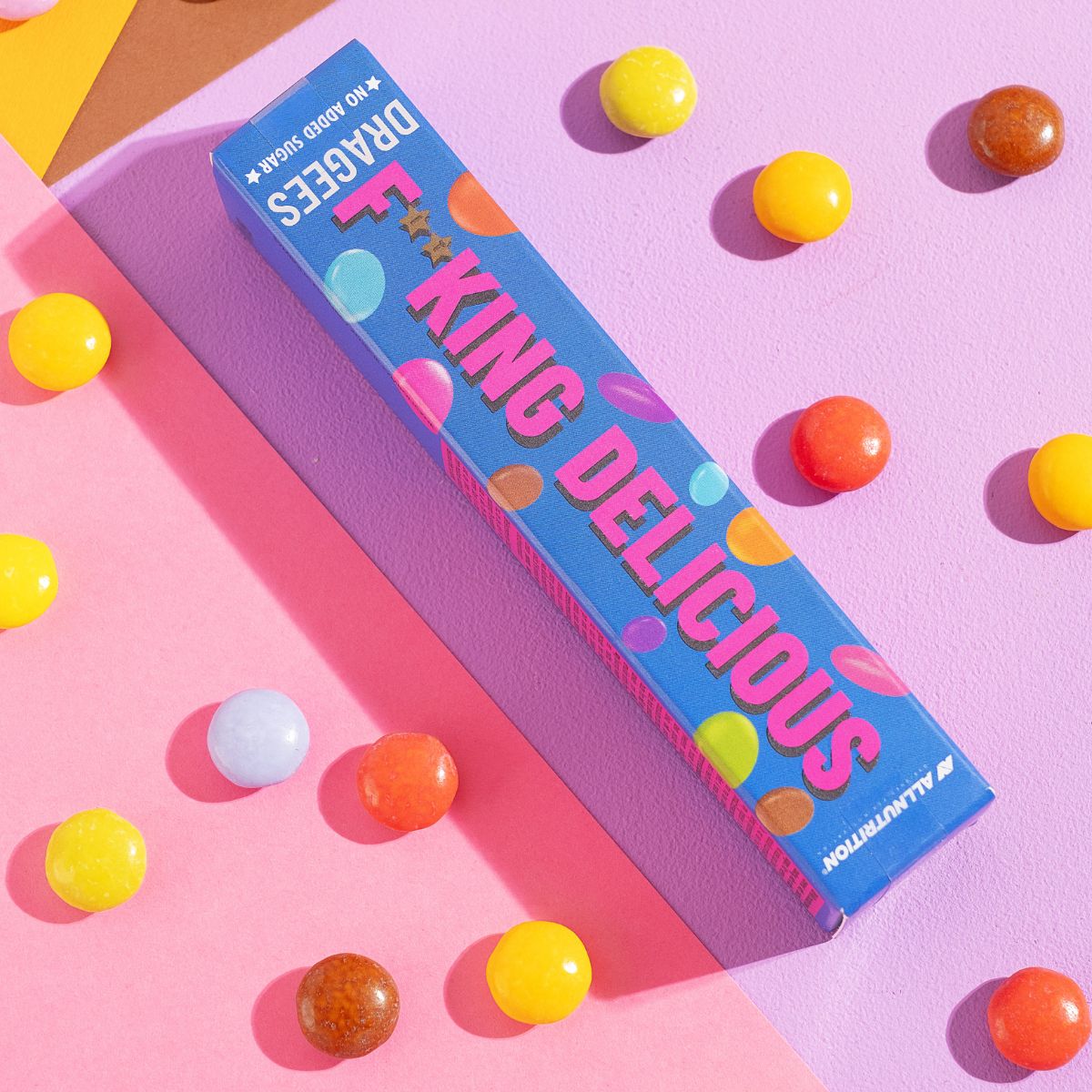 milk chocolate (64 %) (sweeteners: maltitols, steviol glycosides from stevia; milk powder, cocoa butter, cocoa mass, fibre (inulin), concentrated butter [from milk], whey powder [from milk], emulsifier: lecithins [from soy]), flavour), sweeteners: maltitols, steviol glycosides from stevia, rice starch, thickener: gum arabic, sweetener: sorbitols, dyes: betanin, carotenes, ammonia caramel, anthocyanins, curcumin, glazing agent: carnauba wax, milk chocolate: cocoa mass: minimum 30%.