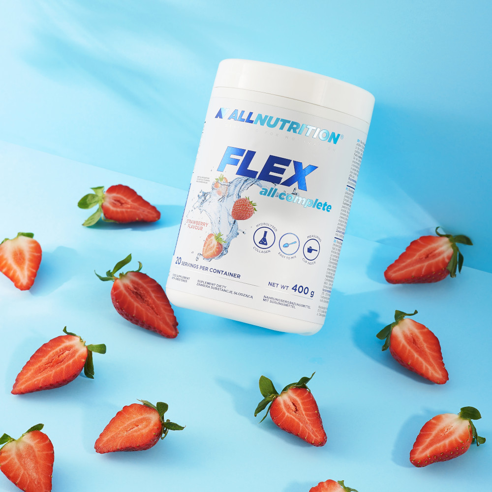 ALLNUTRITION FLEX ALL COMPLETE is an advanced formula designed for people who care about the condition of their joints, bones and skin. Each serving provides as much as 10,000 mg of hydrolysed collagen, which is a key building block of connective tissue, which is particularly important for physically active people and those exposed to increased stress on the joints.