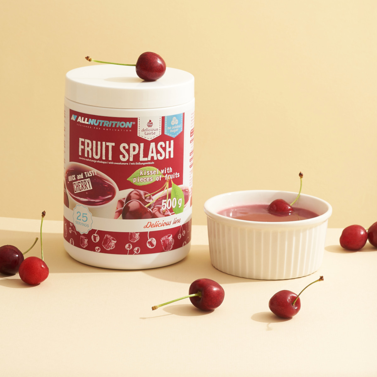 modified cornstarch, freeze-dried cherry (7.5%), acidity regulator: citric acid, colouring agent: anthocyanins from black carrots, flavouring, sweeteners: sucralose, steviol glycosides from stevia
