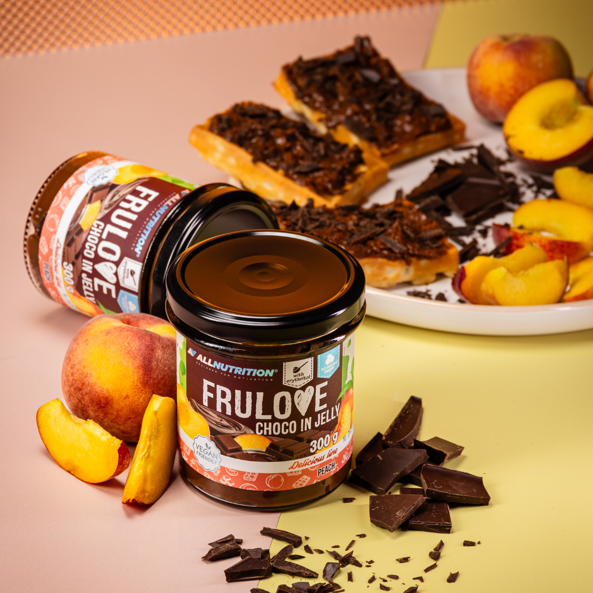 peaches (30%), apple puree, water, sweeteners: erythritol, chocolate 6% [cocoa mass, inulin, cocoa butter, sweetener: maltitol, low-fat cocoa powder, emulsifier: lecithins [from soy], sweetener: steviol glycosides from stevia, natural flavors ], modified starch, reduced fat cocoa powder (2%), lemon juice concentrate, flavouring, preservative agents: potassium sorbate, sweeteners: sucralose