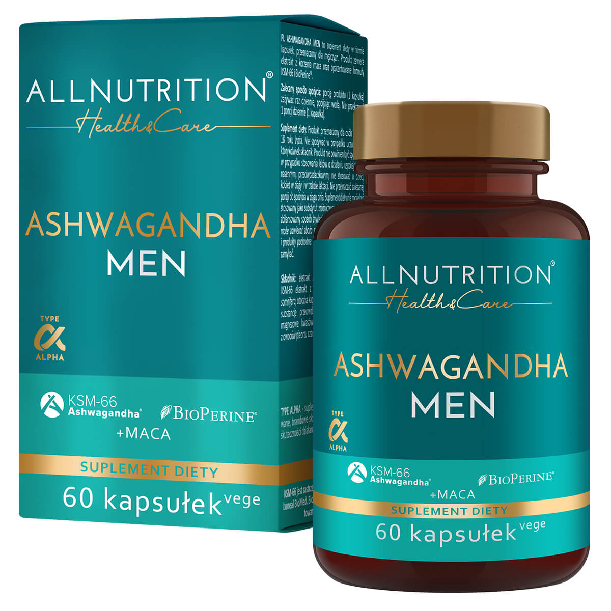ALLNUTRITION HEALTH & CARE ASHWAGANDHA MEN is a dietary supplement for men uniquely formulated to combine three key ingredients: KSM-66 Ashwagandha®, maca and piperine, creating a powerful synergy of action. HEALTH & CARE ASHWAGANDHA MEN is not another standard dietary supplement - it provides great support for men.