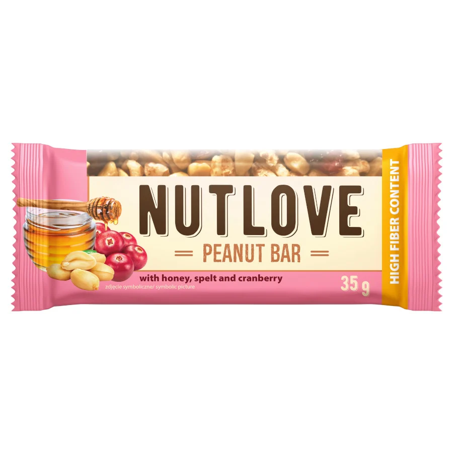 NUTLOVE PEANUT BAR is a great source of fibre, protein, and healthy fats. This is due to the high content of roasted peanuts and expanded spelt. Additionally, peanuts are rich in nutrients, including vitamin E, flavonoids, and antioxidants that have a beneficial effect on brain function.
