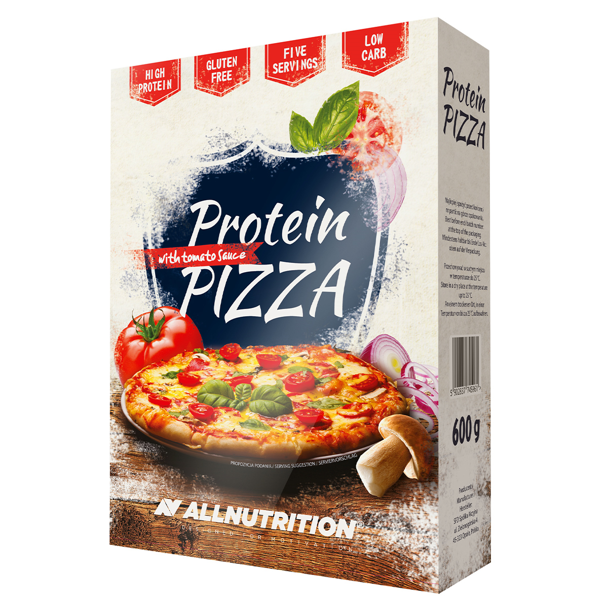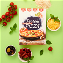 dough: whey protein concentrate [milk]., soy protein isolate, calcium caseinate [milk], potato starch, potato fibre, egg powder, egg protein powder, yeast extract, herbes de provence , bell pepper extract, salt, raising agents: sodium diphosphate, sodium carbonate, thickener: hydroxypropyl methylcellulose, tomato sauce: tomato powder, yeast extract, soy protein concentrate, paprika extract.