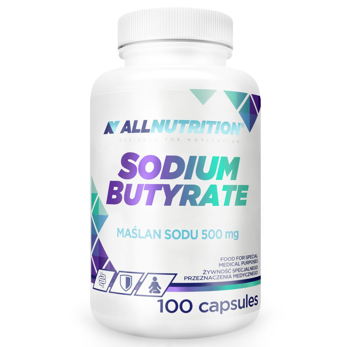 sodium butyrate, capsule shell (gelatine), microcapsule shell (starch), anti-caking agents: silicon dioxide, magnesium salts of fatty acids