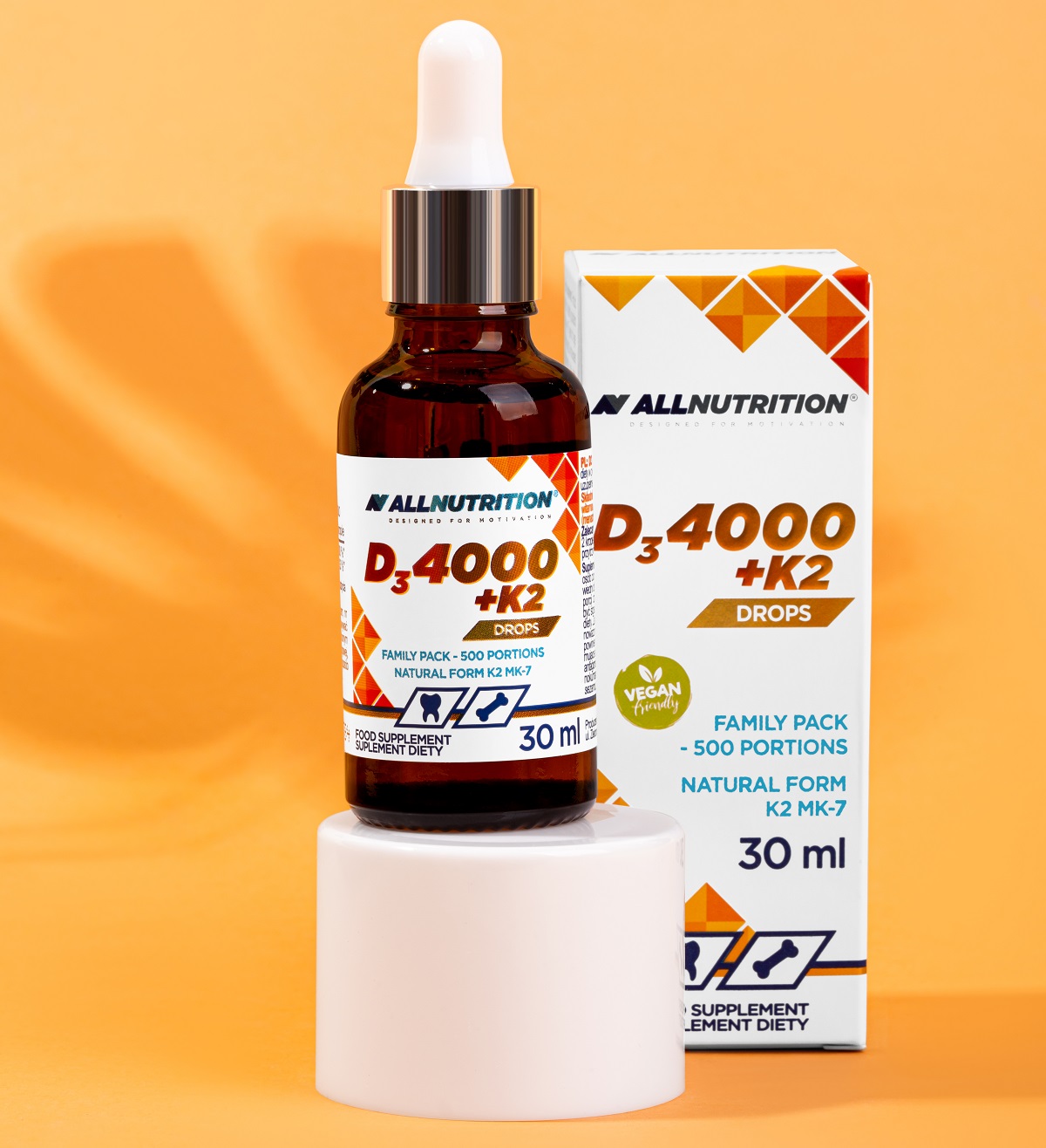 Vitamin K2 (menaquinone-7 MK-7 from soya) is extracted from natto, which is a Japanese fermented soya product. It is the most easily absorbed form of vitamin K. This valuable ingredient can be found in the form of ALLNUTRITION D3 + K2 dietary supplement. Vitamin K takes the form of vitamins K1 and K2. Vitamin K2 is not only used by the liver, but also redistributed by the blood throughout the body.