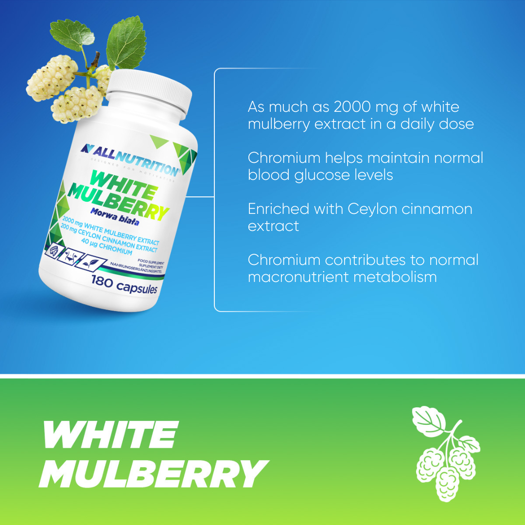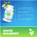 morus alba white mulberry leaf extract, capsule shell (gelatin, water, colouring agent: titanium dioxide), bulking agent: calcium phosphates, cinnamomum zeylanicum bark extract, anti-caking agents: magnesium salts of fatty acids, silicon dioxide, chromium picolinate
