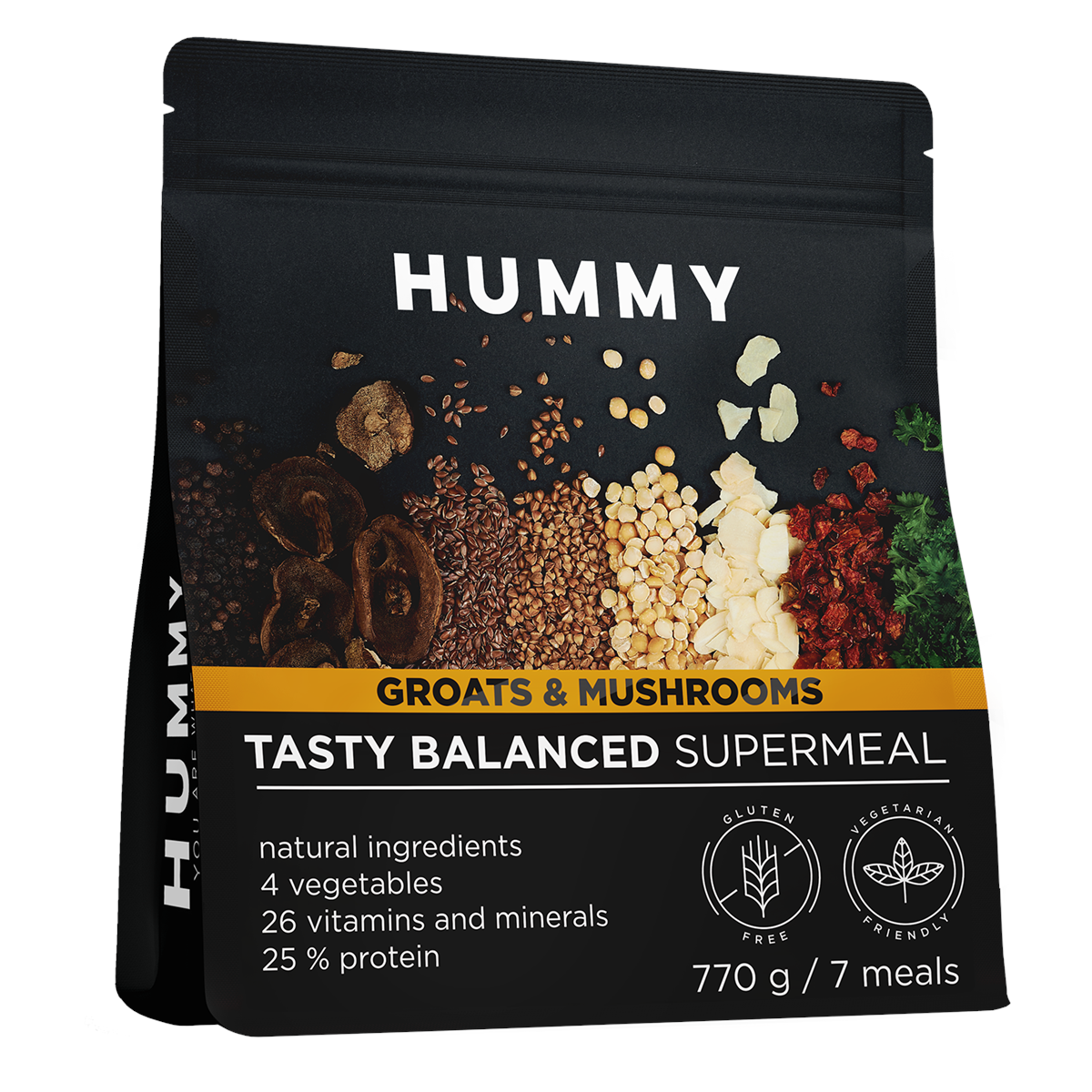 All you need is hot water and a spoon. Boil the water for 2-4 minutes, then pour it over the HUMMY, ready-to-eat meal, mix well, cover or close it, and in another 6 minutes, your meal will be ready. It's perfect for travel or at work, where you can't afford a longer break. Once you've tried all the warm HUMMY BALANCED SUPERMEAL flavours, you'll give up on any time-saving products or dishes that harm your health.