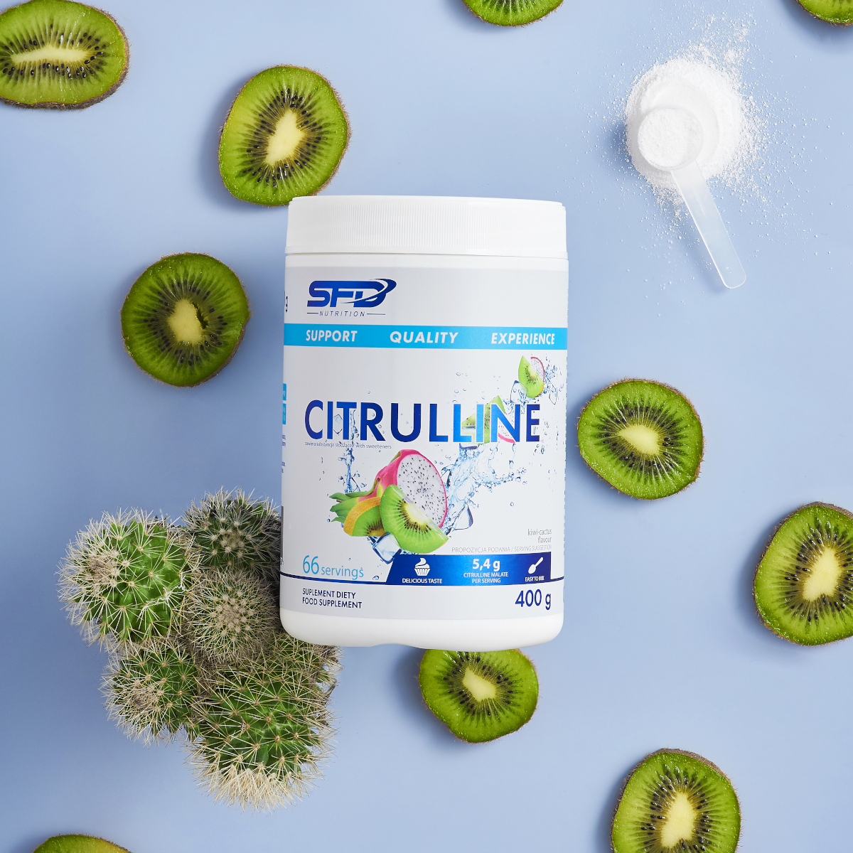 SFD CITRULLINE is a combination of the amino acid L-citrulline and malate (malic acid) in powder form. Using the supplement supports effective training and is intended for every active person.