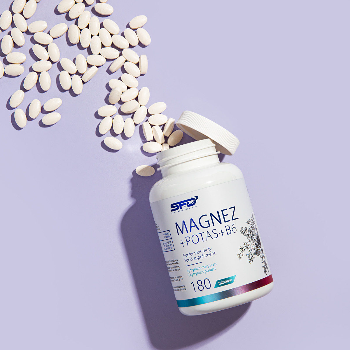 SFD MAGNESIUM + POTASSIUM + B6 is a dietary supplement containing magnesium, potassium and vitamin B6. It is distinguished by its excellent composition, which was developed to support all active people and help them achieve the best sporting results. The product is intended for adults.