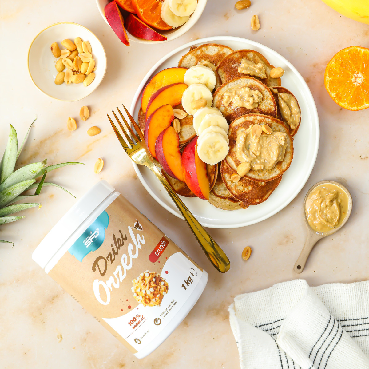 SFD PEANUT CREAM It is a natural peanut butter made from 100% peanuts sourced from environmentally friendly farms. It contains no sugar, hardeners, salt or other unnecessary additives! This makes it an excellent source of healthy fats and protein.