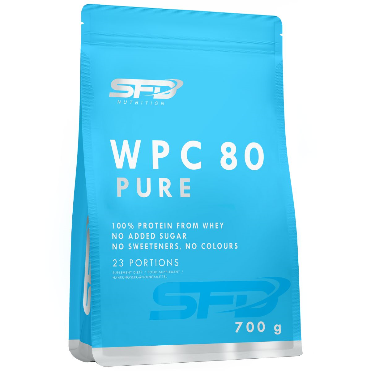 SFD NUTRITION WPC 80 PURE is a whey protein concentrate without added sugar, sweeteners, gluten or unnecessary additives . Each serving provides a full 24g of wholesome protein with a natural flavour, making it an excellent source of essential amino acids for active people, athletes and anyone who cares about regeneration and body building.