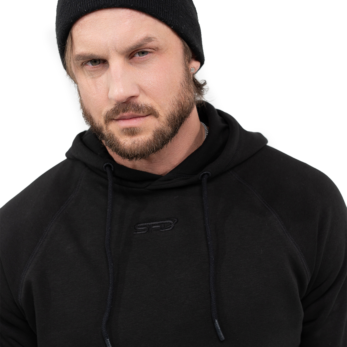 SFD HOODIE CORE ALL-BLACK BLACK is not just a hoodie you wear on cooler evenings. It is a reflection of your style and a completely new quality in your wardrobe. Our aim is: to unite, not divide - which is why our product combines elements of quality streetwear, fitting perfectly into the world of physical activity and sporty spirit, for both men and women.