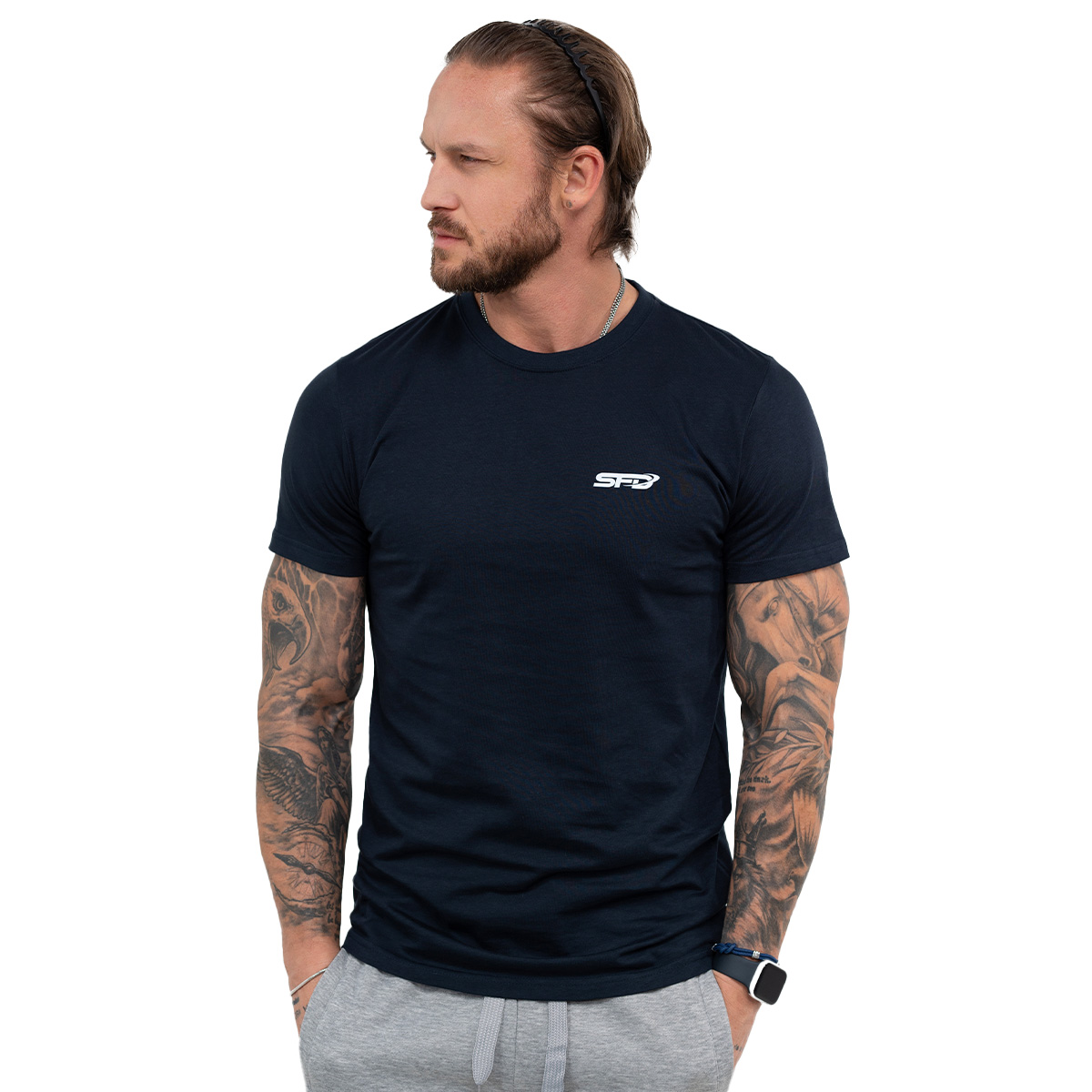 The SFD MEN'S T-SHIRT PREMIUM NAVY BLUE is a product for men who go for simplicity and comfort in their wardrobe while appreciating high quality. This T-shirt, however, is not an ordinary basic! Carefully selected details give it a unique character that will delight anyone who decides to wear it!