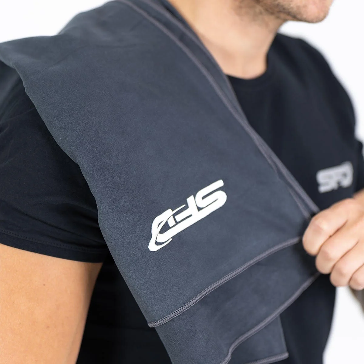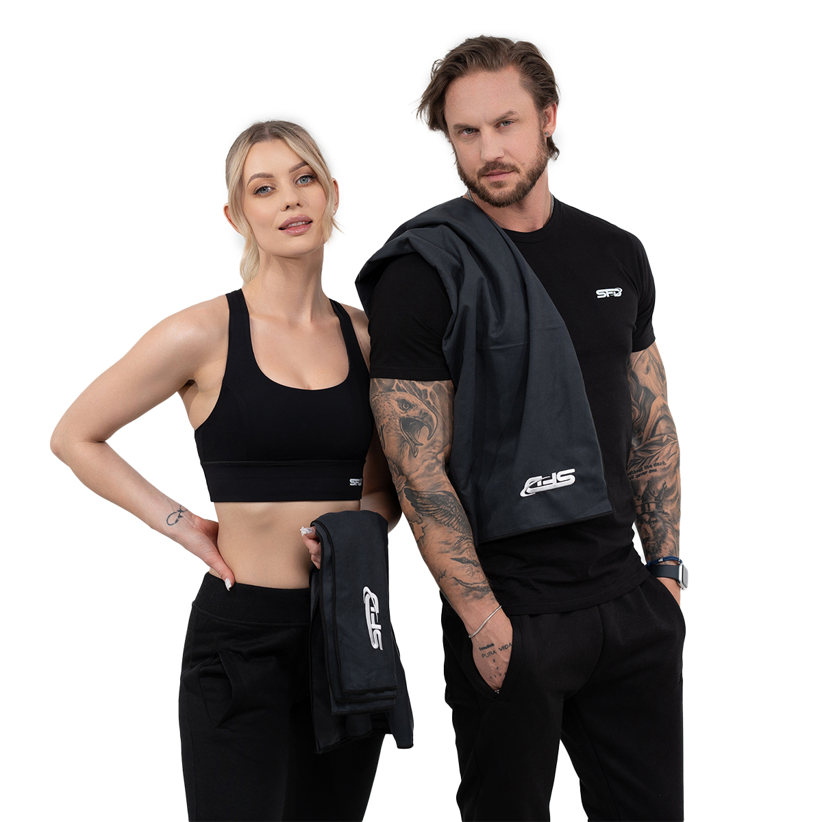 SFD microfibre towel , suitable for training as well as for the beach, while relaxing. It is equipped with a practical elastic strap, which makes it easy to fold and carry with quick-drying properties.