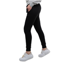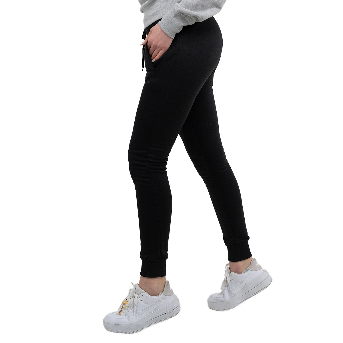The WOMEN'S BASIC BLACK TRACKSUIT BOTTOMS have been created with attention to detail. This wardrobe essential is a must-have for every closet! They feature an adjustable drawstring and elastic waistband for a comfortable fit. The legs have been finished with ribbing, giving them a sleek and stylish appearance.