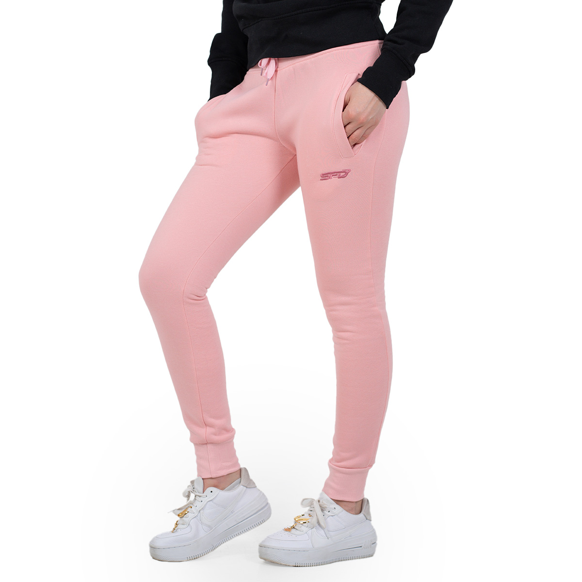 The WOMEN'S BASIC PINK TRACKSUIT BOTTOMS have been created with attention to detail. This wardrobe essential is a must-have for every closet! They feature an adjustable drawstring and elastic waistband for a comfortable fit. The legs have been finished with ribbing, giving them a sleek and stylish appearance.